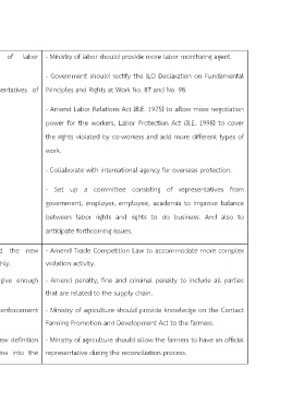 Supply-chain - The conciliation process of the - Thai farmers understand the new - Amend Trade Competition Law to accommodate more complex