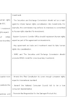 cross-country not equal to Thai’s law or monitoring of investment under EEC. agent to initiate human rights consideration into investments. For