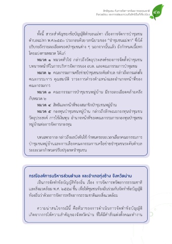 ทั้งนี้ สาระส�าคัญของข้อบัญญัติต�าบลแม่ทา เรื่องการจัดการป่าชุมชน