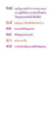 ๒๗ อนุสัญญาต่อต้านการทรมานและ การปฏิบัติหรือการลงโทษที่โหดร้าย ไร้มนุษยธรรมหรือย�่ายีศักดิ์ศรี ๒๙ อนุสัญญาว่าด้วยสิทธิของคนพิการ ๓๑ ประเภทสิทธิมนุษยชน ๓๔ สิทธิมนุษยชนรอบตัว ๔๐ หลักการปารีส ๔๔ การร้องเรียนเมื่อถูกละเมิดสิทธิมนุษยชน