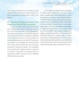travelling had vast impacts on the NHRCT action plan. rights impacts caused by the pandemic, issuing statements