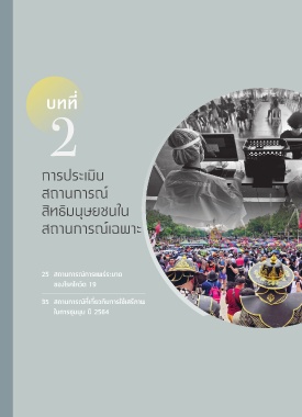 บทท่� 2 การประเมินุ สิถานุการณ์ สิิทธิิมนุุษยชนุในุ สิถานุการณ์เฉพื่าะ 25 สถานการณ์การแพิร่ระบาด ข้องโรคโควิด 19 35 สถานการณ์ท่�เก่�ยวกับการใช้เสรีภาพิ ในการชุมูนุมู ปี 2564
