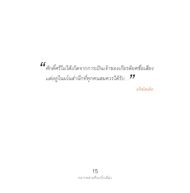 “ ศักดิ์ศรีไม่ได้เกิดจากการเป็นเจ้าของเกียรติยศชื่อเสียง ” เเต่อยู่ในมโนสำนึกที่ทุกคนสมควรได้รับ... อริสโตเติล 15 หลากหลายคือหนึ่งเดียว