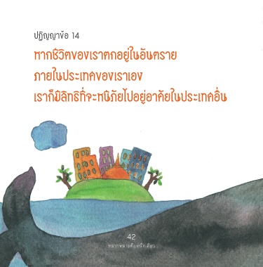 ปฏิญญาข้อ 14 หากชีวิตของเราตกอยู่ในอันตราย ภายในประเทศของเราเอง เราก็มีสิทธิที่จะหนีภัยไปอยู่อาศัยในประเทศอื่น 42 หลากหลายคือหนึ่งเดียว