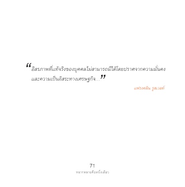 “  อิสรภาพที่เเท้จริงของบุคคลไม่สามารถมีได้โดยปราศจากความมั่นคง