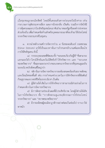 (Elinor Ostrom) มาใช้เป็นแนวทางในการก�าหนดหลักเกณฑ์และเงื่อนไข