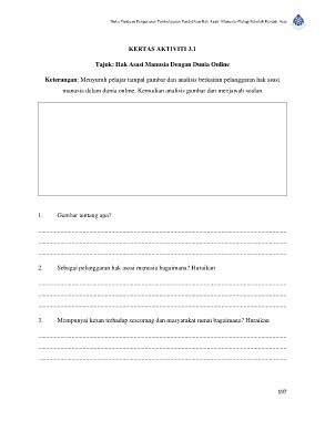 Keterangan: Menyuruh pelajar tampal gambar dan analisis berkaitan pelanggaran hak asasi